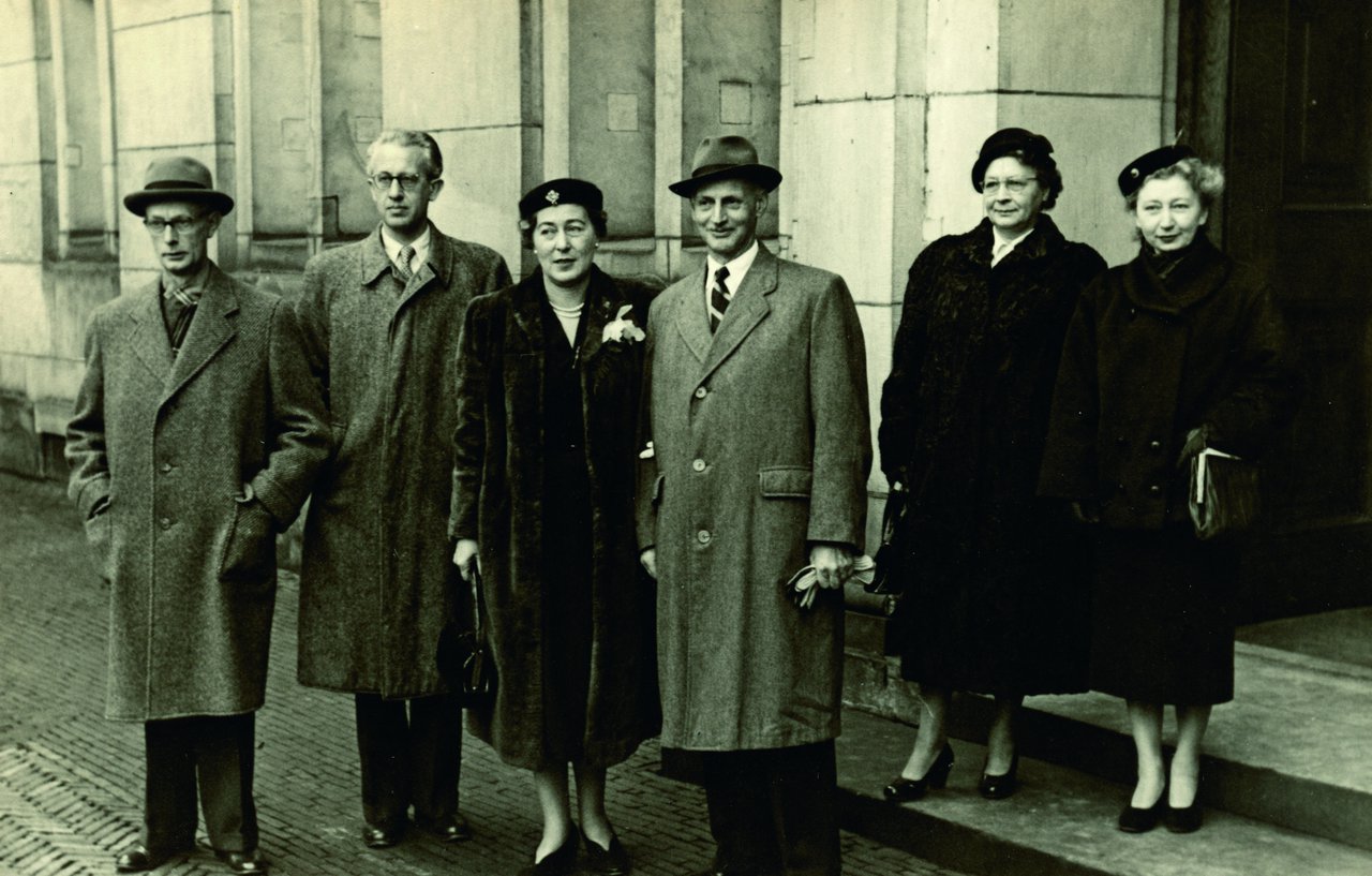 From left to right: Johannes (Jo) Kleiman, Jan Gies, Fritzi Frank-Markovits, Otto Frank, Johanna Kleiman-Reuman and Miep Gies-Santrouschitz.